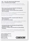 Pocket Microscope – The MicroBrite Plus LED Pocket Microscope is compact and lightweight, making it the perfect educational toy for portable use as a field microscope or classrom lab microscope. Educational Toy – Add this STEM toy to any classroom science kit to bring educational content to life. The MicroBrite encourages hands-on exploration and a deeper understanding of the natural world Bright LED Illumination – The built-in advanced light system of this pocket microscope evenly shines bright LED light onto specimen to provide clear vision and accurate observations. High Magnification – With a versatile magnification range of 60x to 120x, the MicroBrite can adapt to any experiment, providing stunning accuracy and precision when viewing prepared microscope slides or everyday objects under the microscope. Designed and Lab Tested in New York by Carson, USA Optics Experts Since 1990. Product Description Our Story The video showcases the product in use. The video guides you through product setup. The video compares multiple products. The video shows the product being unpacked. With over 30 years of experience in the optics industry, Carson’s product line has grown exponentially to encompass a wide range of products and accessories that reflect the needs of its customers. Carson has a dedicated team of engineers whose sole mission is to improve the customer experience. Carson MicroBrite Plus Pocket Microscope! The video showcases the product in use. The video guides you through product setup. The video compares multiple products. The video shows the product being unpacked. Discover, learn, and explore the wonders of the natural world with the Carson MicroBrite Plus LED Lit Pocket Microscope! With up to 120x magnification and LED lighting, kids, adults, students and professionals alike can witness the tiniest details come to life in this powerful portable tool. 60x - 120x Pocket Microscope MicroBrite Plus Handheld and Portable LED Lit for Bright & Clear Images Lab Tested Magnification Our team of Engineers personally test each and every one of our optical products for 100% magnification accuracy. Don't be fooled by what you see! LED Lighting Reveal all the hidden details with our advanced LED lighting system! Built in bright LED lights help you observe clear, detailed images with ease. 60x - 120x Zoom Magnification With a versatile magnification range, the MicroBrite adapts to your needs with precision. Adjust the zoom of your MicroBrite for stunning accuracy! For Best Results... Microscope Base must be flush against a flat viewing surface, with the LED Light turned on to provide the highest clarity images in your studies. MicroBrite Plus Other Carson Microscopes! 60x - 120x Magnification Range 60x - 120x Slides Included Phone Clip Included Additional UV Light See Everyday Objects See Slides LED Lighting 60x - 120x Magnification Range 100x - 250x Slides Included Phone Clip Included Additional UV Light See Everyday Objects See Slides LED Lighting 60x - 120x Magnification Range 100x - 250x Slides Included Phone Clip Included Additional UV Light See Everyday Objects See Slides LED Lighting 60x - 120x Magnification Range 20x - 60x Slides Included Phone Clip Included Additional UV Light See Everyday Objects See Slides LED Lighting MicroBrite Pro MicroFlip MicroFlip Bundle PocketMicro Does this pocket microscope work on 3D (not flat) objects? YES, but practice focusing and examining flat objects first. A 3D object will work if placed near (but not inside) the bottom of microscope (clear part), but if you pre-focus the microscope on a flat object first, it will be much easier. I'm looking at an object like a stamp and image is upside down / reversed. Is that right? YES, most microscopes do this. For handheld microscopes, the optical system flips and reverses the image, while magnifying it. This allows for an affordable and compact design. The microscope isn't broken, that's just how a pocket microscope works What kind of things can I review with this microscope? The MicroBrite can examine a diverse range of subjects, such as fabric, grass, sand, hair, skin, bugs, stamps or even a pineapple or worm! You can even observe larger microorganisms like bacteria, blood, germs, paramecium and euglena! Can I use a smartphone with this microscope to take images and video? The MM-300 version does not have a smartphone adapter, but you can buy the MM-310 adapter separate to work with it OR you can buy the MM-350 that comes with both the microscope and the smartphone adapter. How do I get the best image when focusing with this portable microscope? Always practice focusing on a flat object at the lowest power setting. Slowly turn the knob until you get close to seeing a focused image. Then turn the knob extremely slowly to get the perfect focus. Then up the power setting and slightly refocus.