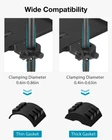 Convenient Size: The microphone stand tray is 10.6” × 8.1” in size, capable of holding different items like capos, picks, tuners, harmonics, phones, remotes, sheet music, earphones, etc. Adjust the knob, and it is easy to set the position of the sturdy tray on your mic stand. Wide Clamping Range: The mic stand tray is compatible with the pole within a diameter of 0.4in-0.86in, suitable for various microphone stands, webcam stands, camera tripods, music sheet stands, speaker stands, selfie ring light stands, etc. Add or remove the thin or thick gasket inside the clamp to match the size of the pole. O-Style Buckle Lock: This durable tray has a max load-bearing capacity of 6.6lbs/3kg and features the upgraded clamp of the O-style buckle lock. Different from other wobbly traditional clamps, the O-type clamp attaches to your music stand more tightly and stably. Flexible Phone Holder: The package comes with a good quality phone holder, which fits cellphones within 2.24in-3.66in width. Both the rotatable ball head and gooseneck of the phone holder are 360° adjustable. You can freely adjust your phone at any angle when in use. Versatile Applications: Easy to install and carry in a bag. Keep your accessories handy with our well-made shelf. This desk mic stand tray is perfect for multiple purposes such as stage, recording studio, home studio, theater, office, lecture hall, classroom, meeting room and more.