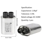 Home Microwave Oven Repair Replacement Parts Kits Package List: 1 * HV Capacitor 2100V 1.0uF 2 * Diode CL01-12 1* Cased Fuse 5KV/0.8A 2* 5x20mm Slow Blow Fuse 2* 6x30mm Slow Blow Fuse 20A 1* 6X40MM Fuse 0.75A 5KV. 1* 6X40MM Fuse 0.8A 5KV. 2*Heat Shrinkable Tube 1*Plastic Box