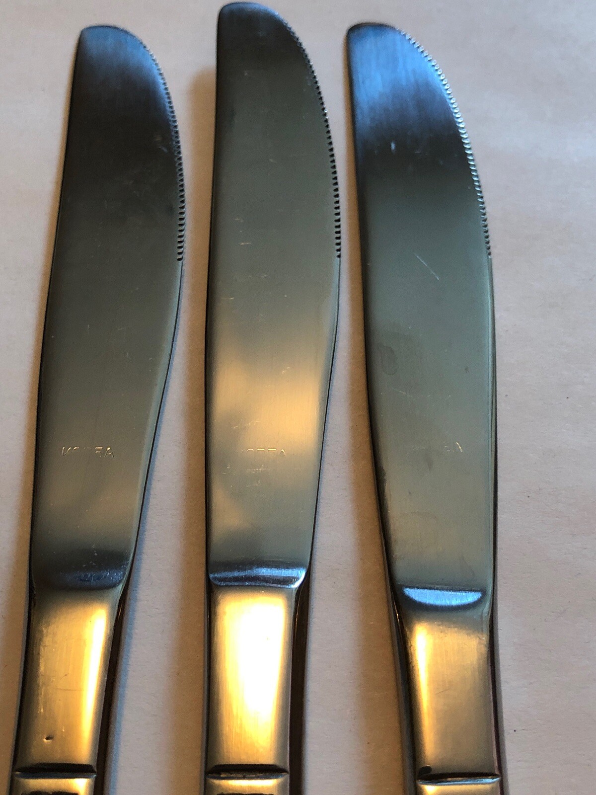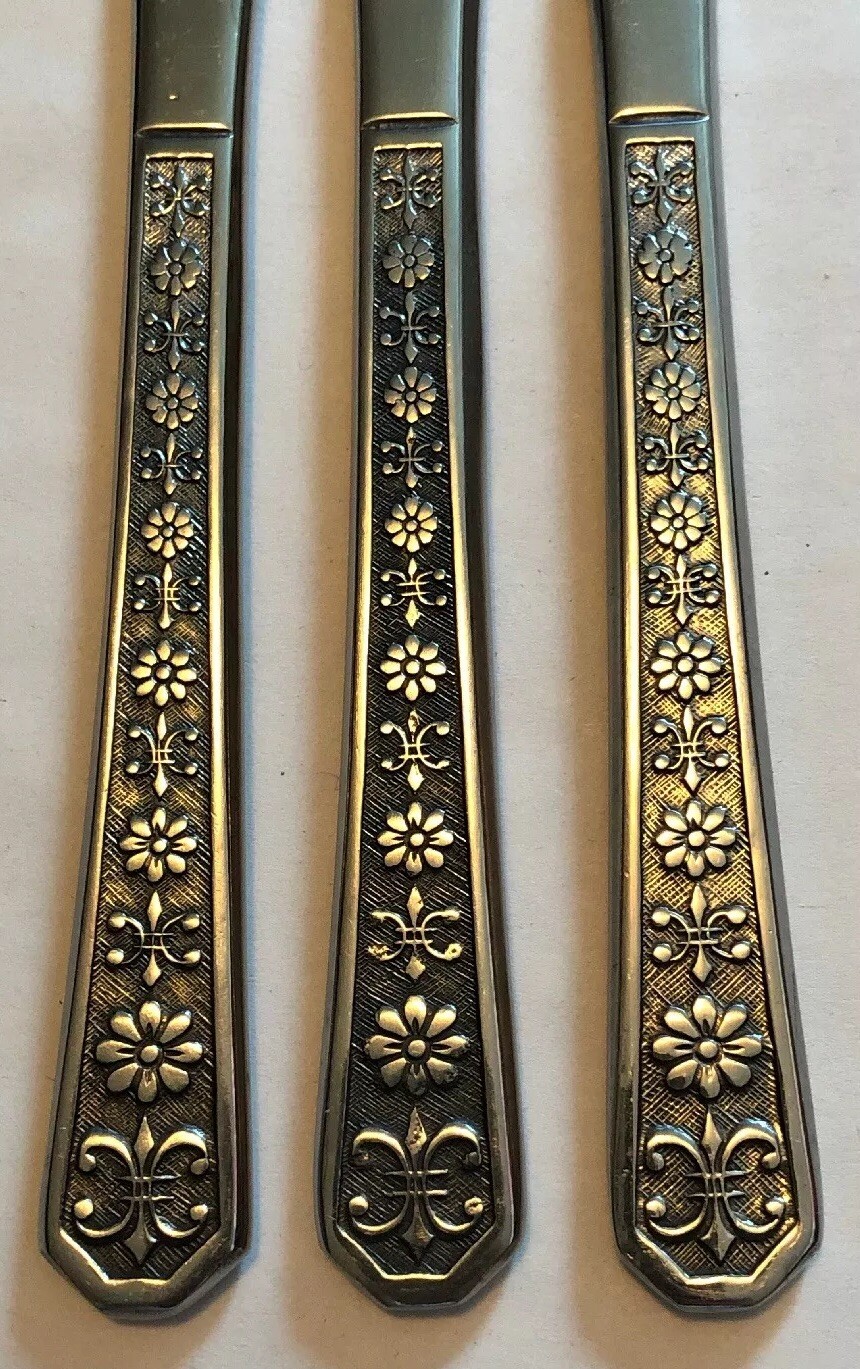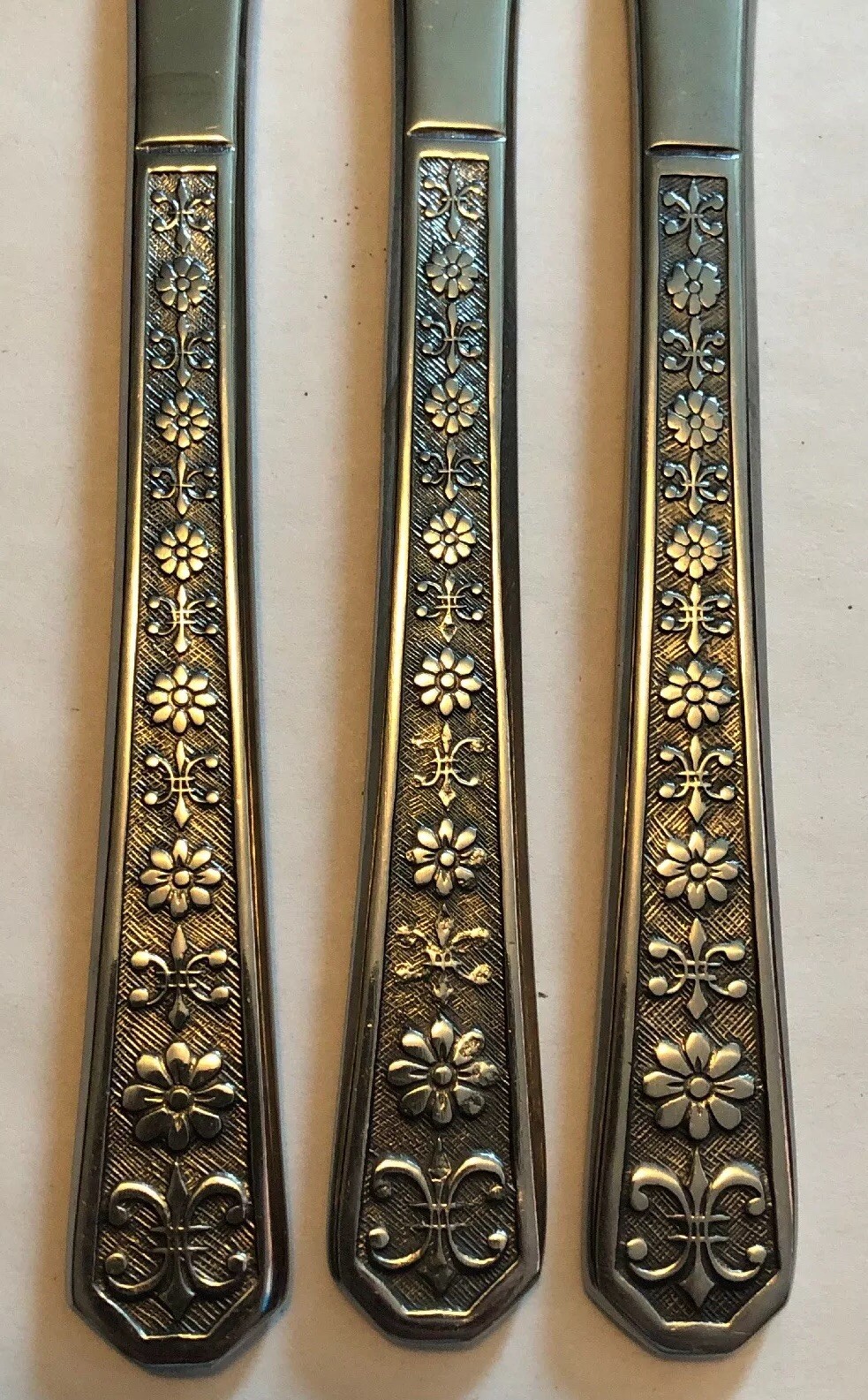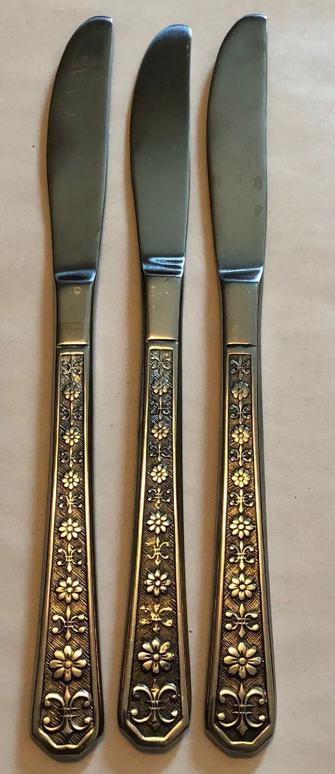 INTERPUR Stainless Flatware Florenz 8 Petal Pattern. 3 dinner knives. Please see pictures for details as this is part of my description.