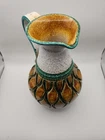 Please see the photos for conditions. Has 2 small chips you can see in the photos one in the bottom and the second you really have to look at it to see it. This Mid-Century Modern Italian Majolica Glazed Pottery Pitcher features a colorful multicolor design characteristic of Majolica pottery. Made in Italy, this pitcher is crafted from terracotta using traditional pottery techniques. The pitcher has a classic shape and style typical of Mid-Century Modern design, making it a unique and stylish piece for serving beverages or as a decorative accent in any home.