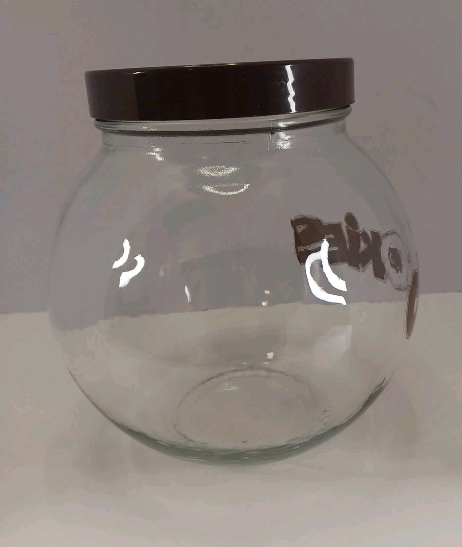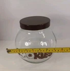 This Vintage Glass Bowl Cookie Jar is a charming addition to any kitchen or collection, with a mid-century modern design that adds a touch of retro flair. Standing at 8 inches tall, this clear glass jar is perfect for storing cookies or other small treats while adding a vintage aesthetic to your home decor. Its unique fish bowl shape adds character to its style, making it a standout piece in any kitchen storage and organization setup.