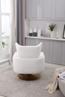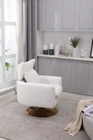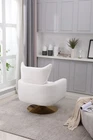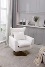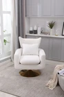 Specifications Place of Origin #originPlace# Filler Foam Product Style American Design Main Color White Main Material Fabric Use Case Primary Living Space Dangerous Goods #dangerFlag# Dimensions & Weights Assembled Length (in.) 29.90 Assembled Width (in.) 29.20 Assembled Height (in.) 36.60 Weight (lbs) 49.50 Product Features Effortlessly spin in a full 360-degree rotation with ease. Sturdy construction featuring a solid and engineered wood frame resting on a glamorous golden-finished circular metal base. Experience modern style and exceptional comfort with our chair's gracefully curved and wraparound backrest. Effortless swivel design allows you to easily change your perspective and face the direction you desire, enhancing your comfort and convenience. It's wrapped in upholstery and rests on a swivel base. Description Weight&Dimensions Overall W29.9'×D29.2'×H36.6' Seat Width 19.7' Seat depth 23.2' Seat Height 18.5' Back Height - Seat to Top of Back 18.1' Net weight / Gross Weight 49.5LB/55LB