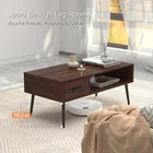 Mid Century Retro Style - Whether you're looking for someplace soft to rest your feet or for a formal finishing touch, this vintage and stylish coffee table can also as a TV stand to accentuate your living room, matched seamlessly with different styles of furniture decoration in different rooms Practical Structure with Drawer - The roomy tabletop & open storage shelf is ideal for showcasing the things you love most. The coffee table with drawers enclosed private space and keep your room tidy to store daily necessities, magazines, books, toys, electronics, collections... Quality Sturdy Wood Material - Made of high-quality particleboard and solid pine legs, this coffee table promises a long service life that can hold up to 110lb. The overall finish is smooth, odorless, harmless Multiple Uses & Easy to Clean- HAIOOU Coffee tables can be also used as a corner table, hallway table, sofa table, or TV stand, 10inches of high foot configuration reserves enough height is easy for floor mopping & cleaning, and stains easily removed on water-resistant tabletop Easy to Assemble - Comes with numbered parts and detailed instructions to make assembly as easy as a puzzle. Follow the instructions, assembly can be completed by one person within 30 minutes Product Description HAIOOU Coffee Table, Mid Century Modern Style Cocktail Table TV Stand with Drawer, Open Storage Shelf, Stable Floor-Anti-Scratching Pine Leg for Home, Office, Living Room - Walnut There are thoughtful details you'll like... Open Storage Shelf - Cafe table provides plenty of space to display your belongings A Perfect Hiding Drawer - Coffee table with storage drawer allows you to collect small and private stuff well Stable Angled Wood Legs - Coffee Table for living room with stable and sturdy construction, simple but super solid to support up to 110 lbs. Wood legs reserve 10-inch height to stretch your legs or sit cross-legged at the coffee table and enjoy leisure time. Protective Feet Pads - Mid century modern coffee table come with feet pads to protect your lovely floor from scratching Multi-Functional & Decor - Wood coffee table is used as an entertainment center or TV cabinet to highlight your mid-century aesthetic and taste, being a part of your apartment decor. Waterproof & Scratchproof - Made of high-quality particleboard, it could resist water and scratching Easy to Clean - The excellent finish makes this table away from annoying smell, smooth surface makes it easy to clean with dry or wet cloth Easy & Funny Assemble - Comes with numbered parts and detailed installation manual to make the assembly as easy as picturing puzzle. Color Walnut Brown Material Particleboard, Pine legs Overall Dimension 41.3"(L)*21.7"(W)*17.7"(H) Open Shelf Dimension 26.4"(L)*21.7"(W)*6.7"(H) Drawer Dimension 12.8"(L)*11.8"(W)*3.9"(H) Product Weight 44.09 lb (20 kg) Max Load Capacity 110 lb (50 kg)