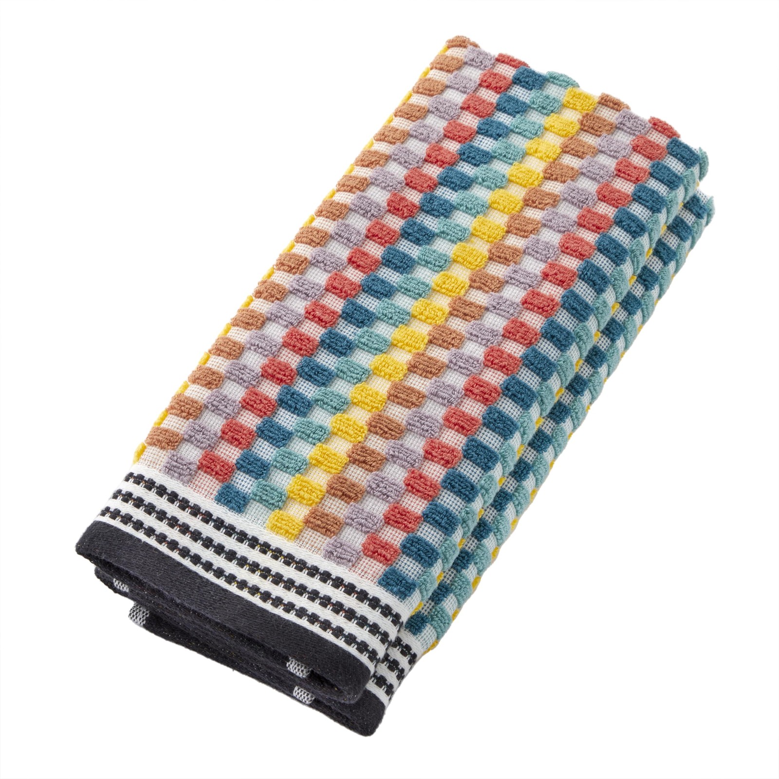 Includes 2 hand towel Inspired by the Mid-Century artwork collection by Cheryl Warrick Soft cotton terry with a colorful striped jacquard pattern and decorative dobby trim Coordinating Bath Towel sold separately 100% Cotton 16" x 26" Machine wash Imported brought to you by Saturday Knight Ltd., a leader for 40+ years in the home décor industry