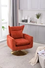 Specifications Place of Origin #originPlace# Filler Foam Product Style American Design Main Color Orange Main Material Linen Use Case Primary Living Space Dangerous Goods #dangerFlag# Dimensions & Weights Assembled Length (in.) 29.90 Assembled Width (in.) 29.20 Assembled Height (in.) 36.60 Weight (lbs) 49.50 Product Features Effortlessly spin in a full 360-degree rotation with ease. Sturdy construction featuring a solid and engineered wood frame resting on a glamorous golden-finished circular metal base. Experience modern style and exceptional comfort with our chair's gracefully curved and wraparound backrest. Effortless swivel design allows you to easily change your perspective and face the direction you desire, enhancing your comfort and convenience. It's wrapped in upholstery and rests on a swivel base. Description Weight&Dimensions Overall W29.9'×D29.2'×H36.6' Seat Width 19.7' Seat depth 23.2' Seat Height 18.5' Back Height - Seat to Top of Back 18.1' Net weight / Gross Weight 49.5LB/55LB