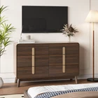 【Spacious 6 Drawer Design】The 6 drawer dresser offers ample storage space for all your essentials,from clothes to accessories.Its spacious design makes it ideal for organizing items in the bedroom,living room,or hallway,providing a clutter-free look while keeping everything easily accessible 【Mid Century Modern Aesthetic】Designed with a sleek mid century modern dresser style,this piece blends timeless elegance with modern practicality.The cherry wood finish and clean lines make it a perfect fit for any decor,adding a touch of sophistication to your home while still offering functional storage 【Versatile Use in Any Room】Whether used as a wooden dresser in the bedroom,a storage chest in the hallway,or a dresser TV stand in the living room,this multi-purpose furniture adapts to various spaces.Its versatile design ensures it complements any room in your home with both style and function 【Sturdy Metal Handles for Easy Access】The sleek metal handles provide easy access to each drawer while adding a modern touch to the chest of drawers for bedroom.These sturdy handles enhance both the look and usability of the dresser,ensuring smooth operation and a polished appearance 【Premium Wood Construction with Adequate Storage】Crafted from high-quality wood,this modern dresser not only offers a stylish appearance but also ensures long-lasting performance.The large storage capacity allows you to keep your belongings neatly organized,making it an essential piece for any room needing extra storage 【Satisfactory After-Sales】Comes with instructions,parts with a number to make the installation easier and more convenient,if you have any questions,please rest assured,we will give you a satisfactory answer within 24 hours