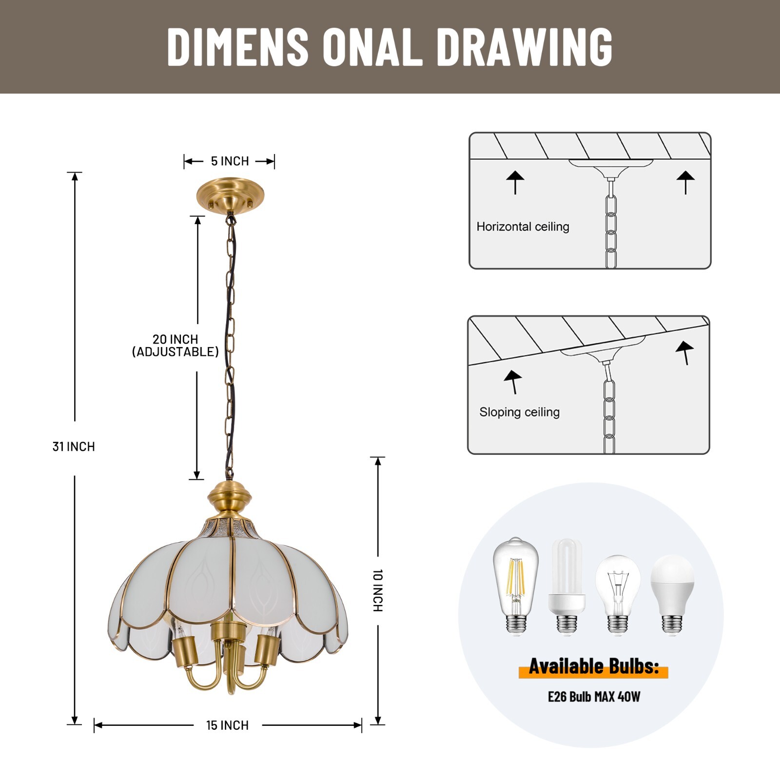 Mid-century Gold Chandelier 3-Lights Pendant Lamp European Ceiling Lighting Specifications: Lamp body color: Gold Material: Acrylic (plastic) Lampshade: with a diameter of about 38cm and a height of about 25cm Bulb model: E26 (3 pieces), excluding bulbs Control method: wall control Hanging chain: about 50cm; Ceiling tray: gold Size: (cm): diameter around 13cm Size after installation: Diameter: 38cm Height: about 80cm Payment Delivery details Return Contact us About us Payment 1.We accept PayPal,G Pay Credit Card,Visa ,etc. payment. 2. Please make payment within 4 days after placing an order, or eBay will automatically open an unpaid case on the fourth day. 3. You can contact us for sure if you want to cancel the order to avoid the unpaid case. Delivery details Your goods will be shipped within our handling time after your full payment. Pls note that we don't ship to Alaska, Hawaii and Puerto Rico.APO/FPO’s address. Return We accept return within 30 days, but we are not responsible for human damage.The return shipping cost is the buyer's responsibilities and try to keep it in your original package. Contact us If you have any questions please contact us through "Ask seller a question" link. We will respond within 2 business day or less. About us We are committed to providing you with a comfortable home and by functional and beautiful ceiling fans and lighting fixtures. As a professional modern lighiting fixture supplier, our team has more than 15 years Ceiling fan and lighting production experience. We are not only committed to produce high-tech, stylish, safe and high quality LED products, but also provide our professional and efficient after-sales service, making your lighting experience more pleasant and comfortable.
