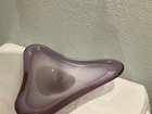 The Mid-century modern Murano purple glass bowl is a striking piece of decorative glass that exudes a unique and stylish design. With dimensions of 13.5" x 10.5" x 4", this bowl is perfect for serving or displaying your favorite items. The rich purple color and sleek Mid-Century Modern style make it a standout addition to any home decor. Made from high-quality glass by the renowned brand Murano, this bowl is a versatile and eye-catching piece that is sure to impress. The color is absolutely beautiful, shades of light to darker plum- it’s a showstopper!