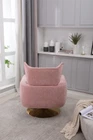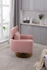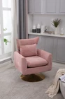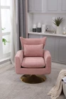 Specifications Place of Origin #originPlace# Filler Foam Product Style American Design Main Color Pink Main Material Linen Use Case Primary Living Space Dangerous Goods #dangerFlag# Dimensions & Weights Assembled Length (in.) 29.90 Assembled Width (in.) 29.20 Assembled Height (in.) 36.60 Weight (lbs) 49.50 Product Features Effortlessly spin in a full 360-degree rotation with ease. Sturdy construction featuring a solid and engineered wood frame resting on a glamorous golden-finished circular metal base. Experience modern style and exceptional comfort with our chair's gracefully curved and wraparound backrest. Effortless swivel design allows you to easily change your perspective and face the direction you desire, enhancing your comfort and convenience. It's wrapped in upholstery and rests on a swivel base. Description Weight&Dimensions Overall W29.9'×D29.2'×H36.6' Seat Width 19.7' Seat depth 23.2' Seat Height 18.5' Back Height - Seat to Top of Back 18.1' Net weight / Gross Weight 49.5LB/55LB