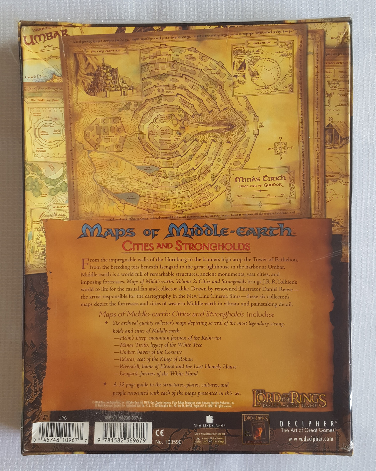 MAPS OF MIDDLE EARTH: CITIES AND STRONGHOLDS BOX SET LORD OF THE RINGS ROLEPLAYING GAME 2003 Sealed in original shrink wrap showing some wear and holes, larger hole in shrink wrap on top right corner and smaller holes on some other corners, some corner wear, dents along one edge of the box top, creasing, sticker residue, see photos for condition and ask questions if needed, sold as-is. Check out my other items and save money with combined shipping. Expert packing. Fast shipping.