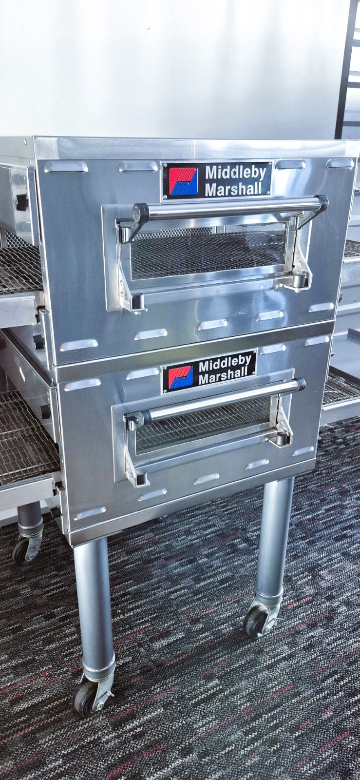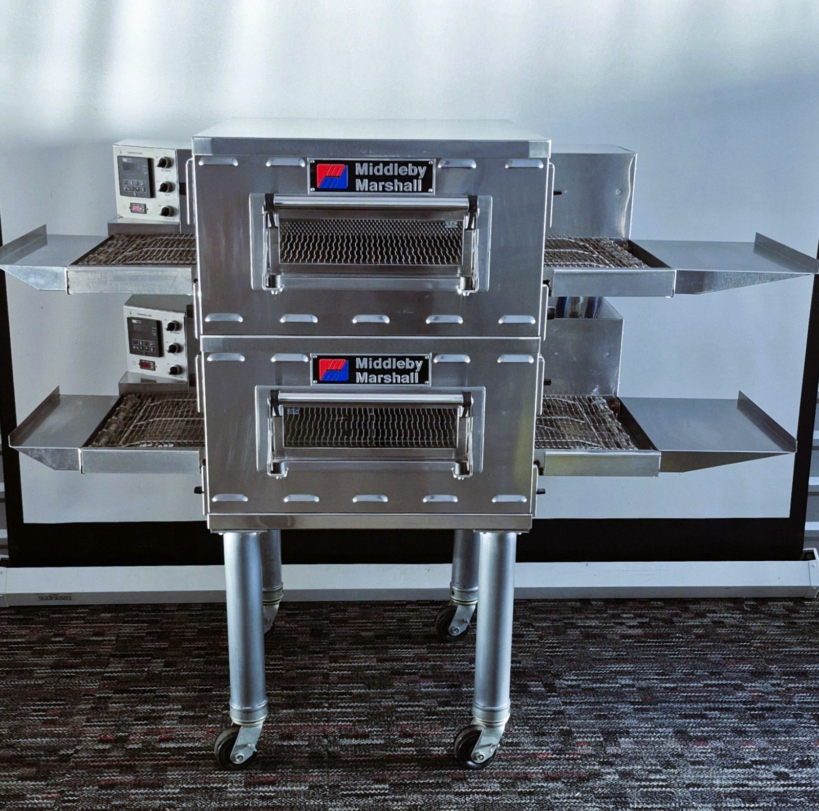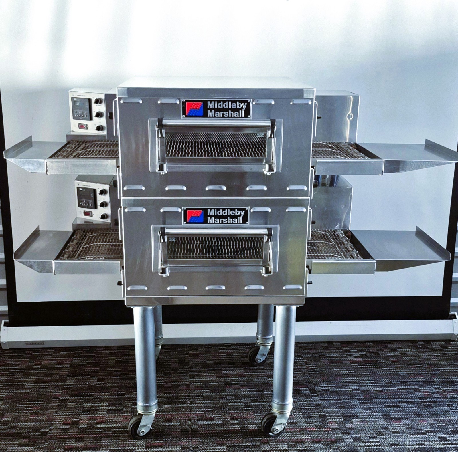 Gas traditional Middleby Marshall conveyor ovens with 28" long cooking chambers and 18" wide belts - Model # PS528G Only very light use in part-time kitchen...looks NEW! Middleby Marshall PS Series conveyor ovens bake both faster and at a lower temperature than other ovens. Vertical columns of hot air move heat aerodynamically instead of using high temperatures. The streams of hot air remove the boundary layers of cool heavy air which tend to insulate the product. All Middleby ovens are designed to cook a multitude of products including pizza, seafood, sandwiches, bagels, ethnic foods and more. This conveyor pizza oven is ideal for establishments with a dynamic menu or where smaller ovens are needed. The conveyor pizza oven incorporates the patented MES (Energy Management System). Middleby ovens allow for efficient heat transfer to products, saving energy as heat is recycled to the product with minimum loss. Middleby pizza ovens are designed with easy cleaning in mind, the oven has removable components including, crumb pans, end panels, air fingers, exit tray and a removable conveyor belt assembly. Freight: Local pickup is always welcome. The quoted flat rate freight charge will get these ovens shipped to your commercial address in the lower 48 United States with tractor trailer rig access. For residential or limited access locations, an applicable freight surcharge will be added accordingly.