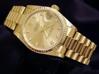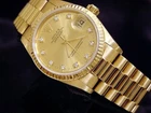 Mon-Thurs: 8:30 am – 5:30 pm (CST) Friday 8:30 am - 2:30 pm (CST) Lifetime Trade-Up Guarantee 30 Days Return Policy 1 Year Warranty Midsize Rolex Datejust 18K Yellow Gold Watch FACTORY DIAMOND 68278 BeckerTime is proud to offer this gorgeous Ladies Midsize 31mm Rolex Solid 18K Yellow Gold Datejust Watch model ref #68278 with a Rolex FACTORY DIAMOND DIAL . This Rolex is the desired QUICKSET MODEL with a Rolex Presidential band. This Rolex is in SUPER EXCELLENT CONDITION . SKU: R541045MT 1 Year Warranty Specifications Brand Rolex Model Name Datejust Model No. 68278 Gender Midsize [ ? ] Case Diameter 31mm Box No Papers No Condition Preowned - Super Excellent Condition (See Condition Grading Scale below) Warranty Yes - BeckerTime 1 Year Warranty Lifetime Trade-Up Guarantee This Rolex comes with the BeckerTime Lifetime Trade-Up Guarantee Watch Features Movement Rolex officially certified chronometer self-winding automatic movement with QUICKSET DATE function Dial Rolex GOLD CHAMPAGNE dial with 10 round brilliant diamond markers. This is a factory diamond dial produced by Rolex. Bezel Rolex 18k yellow gold FLUTED bezel Case Rolex 18k yellow gold case Crystal Aftermarket Sapphire Crystal Band Rolex 18k yellow gold President bracelet with Rolex signed hidden clasp Max Wrist Size 6 1/2" wrist Additional Links Available for an additional cost. Link adds 1/4" AS WITH ALL OF OUR WATCHES, AUTHENTICITY IS GUARANTEED! THIS IS A FILE PHOTO. On This Item On All Items Condition Grading Scale Brand New 10 New. Perfect condition and never worn. The watch has the original manufactures protective plastic (if applicable). It may or may not come with original box or papers. It is working properly, keeping very good time. Super Excellent Condition 8.5 to 9.5 Super nice. Light signs of wear. Watches with the original band will have moderate to minimal stretch between the links. The watch is working properly, keeping good time. Never Worn 9.8 to 9.9 New. Perfect condition and never worn. The watch has the original manufactures protective plastic (if applicable). It may or may not come with original box or papers. It is working properly, keeping very good time. Excellent Condition 7.0 to 8.5 Nice. Signs of wear. Depending on the age of the timepiece, watches with the original band will have loose or moderate stretch and wear between the links. The watch is working properly, keeping good time, but may gain or lose up to 30 seconds over 24 hours. Super Mint Condition 9.7 to 9.8 Perfect. Looks never worn. As close to new as you can get for a preowned watch. This is the equivalent of a new watch that does not have the original manufactures protective plastic (if applicable). If you remove the protective plastic from a brand new watch, and have not yet worn the watch, it is now in Super Mint Condition. It may or may not come with original box or papers. It is working properly, keeping very good time. Fair Condition 5.0 to 7.0 Fair. Signs of heavy wear. Watch may have a few dings, nicks, or deep scratches The band has severe stretch between the links. The watch is working, but may gain or lose a few minutes over 24 hours. Mint Condition 9.5 to 9.7 Near perfect. Looks like new on the wrist. Signs of wear are only visible with a loupe. The band has no stretch or wear. The watch is working properly, keeping very good time. Poor Condition Less than 5 Poor. Signs of extreme heavy wear, damage, or abuse. Major cosmetic and/or mechanical flaws that directly affect the integrity of the watch. The watch may be missing parts and/or may not run at all. We do not recommend this watch to be worn in this condition. Requires a lot of work to be made wearable. Brand New 10 New. Perfect condition and never worn. The watch has the original manufactures protective plastic (if applicable). It may or may not come with original box or papers. It is working properly, keeping very good time. Never Worn 9.8 to 9.9 New. Perfect condition and never worn. The watch has the original manufactures protective plastic (if applicable). It may or may not come with original box or papers. It is working properly, keeping very good time. Super Mint Condition 9.7 to 9.8 Perfect. Looks never worn. As close to new as you can get for a preowned watch. This is the equivalent of a new watch that does not have the original manufactures protective plastic (if applicable). If you remove the protective plastic from a brand new watch, and have not yet worn the watch, it is now in Super Mint Condition. It may or may not come with original box or papers. It is working properly, keeping very good time. Mint Condition 9.5 to 9.7 Near perfect. Looks like new on the wrist. Signs of wear are only visible with a loupe. The band has no stretch or wear. The watch is working properly, keeping very good time. Super Excellent Condition 8.5 to 9.5 Super nice. Light signs of wear. Watches with the original band will have moderate to minimal stretch between the links. The watch is working properly, keeping good time. Excellent Condition 7.0 to 8.5 Nice. Signs of wear. Depending on the age of the timepiece, watches with the original band will have loose or moderate stretch and wear between the links. The watch is working properly, keeping good time, but may gain or lose up to 30 seconds over 24 hours. Fair Condition 5.0 to 7.0 Fair. Signs of heavy wear. Watch may have a few dings, nicks, or deep scratches The band has severe stretch between the links. The watch is working, but may gain or lose a few minutes over 24 hours. Poor Condition Less than 5 Poor. Signs of extreme heavy wear, damage, or abuse. Major cosmetic and/or mechanical flaws that directly affect the integrity of the watch. The watch may be missing parts and/or may not run at all. We do not recommend this watch to be worn in this condition. Requires a lot of work to be made wearable. Why Buy From BeckerTime About Us BeckerTime began in 1998 as the passion of father-son watch enthusiasts. We began selling on eBay in Janua