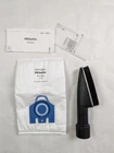 Miele Sub20 brush attachment, lightly used condition. There remain some debris/hairs even after I cleaned it up a bit. I am including a spare Miele GN vacuum cleaner bag as well. This is manufacturer's description of the Sub20: Product Information Flexibly adjustable universal brush with natural bristles for gentle, fast cleaning of high-quality floors. Two adjustable swivel joints Soft protective strips to prevent scratching of furniture High density of natural bristles ensures gentle cleaning Attachable to the handle, Telescopic Suction Wand or suction hose Compatible w. all Miele vacuum cleaners (except cordless stick vacuum cleaners)