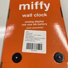 The Miffy Wristwatch Wall Clock is a vibrant and modern addition to any child's bedroom or playroom. This 36" analog clock features a rectangular shape with a bright orange and yellow color scheme, perfect for adding a playful touch to the decor. Made of plastic and powered by batteries, this hanging wall clock is both stylish and functional. The clock showcases a quartz movement and Arabic numerals, making it easy to read for young children. With its cartoon character theme and unique design, this clock is sure to be a hit with any Miffy fan. There’s a tiny small scratch .5 inch between the 7pm and 9pm.