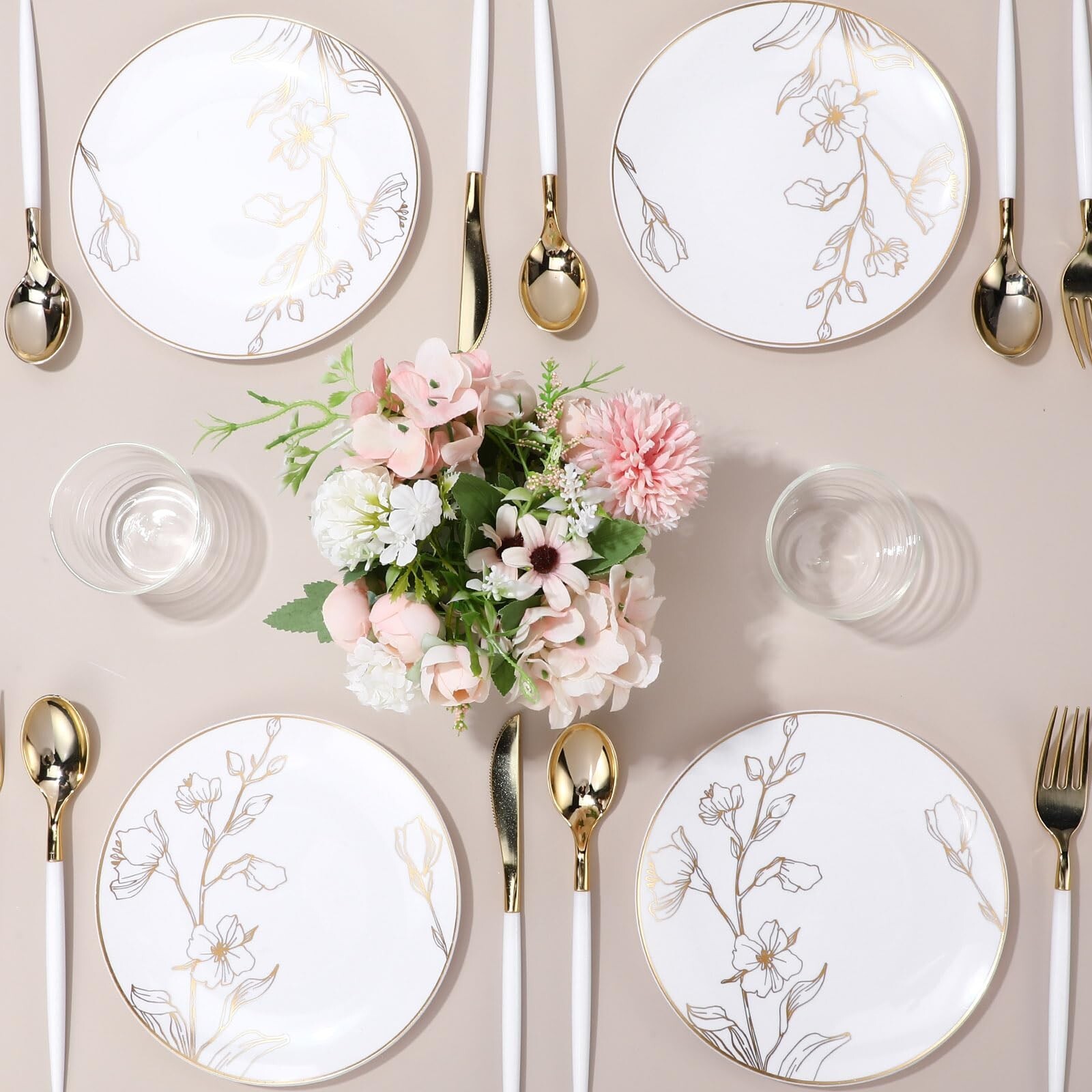These plates are absolutely stunning—perfect for weddings, birthdays, or any elegant event! The gold floral design adds a luxurious touch, and the heavyweight plastic feels sturdy yet disposable. They’re just the right size, and the gold rim makes every dish look fancy. Guests were impressed, and cleanup was a breeze. Highly recommend for anyone wanting a touch of class without the hassle!