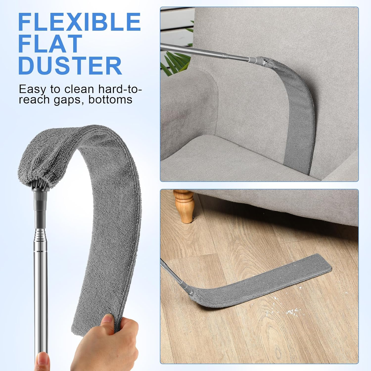 Ample for Dusting: if you buy our products, and you will be given 2 pieces of extension poles and 6 pieces of microfiber dust brush gap mops, useful and convenient for cleaning and dusting; The quantity of retractable microfiber dust gap mop is ample for long time use and replacement needs Retractable for Easy Use: the stainless steel long pole is stronger and will not rotate; The gap dust cleaner has a flexible flat head about 0.3 inches thick, 3 inches wide and 15.7 inches long, convenient for you to get into hard to reach places; Attached the pole to the gap duster, it can extend from 32 inches to 102 inches, capable of reaching further distances as well as between narrow spaces, no longer needing to step on a ladder or squat on the ground Reliable Quality: the extension poles are made of sturdy and lightweight stainless steel and PP material, allowing you to match with microfiber gap mop dusting brush, which can help perfectly solve the dust in the cracks; The gap mop adopts the principle of electrostatic vacuuming, easy dust removal, and can be washed repeatedly for reuse; The quality microfiber duster can remove large amounts of dust from under furniture Flexible to Bend and Disassemble: the long, flat flexible gap dusters for cleaning retractable are the ideal cleaning tools for difficult to reach places; The long, flat outline easily slides between and under kitchen appliances, washers, dryers and deep cabinets; They also flexible and bendable, so you can easily remove dust from any crevices Multiple Uses: the retractable gap dust cleaner washable is lightweight and sturdy, and can be applied wet or dry, very suitable for dust and build up under appliances and similar hard to reach spaces, ideal for kitchens, laundry, garages, bathrooms and so on; It can be applied as a thoughtful and warm gift for pet owners and allergy sufferers Features: The retractable dust gap cleaner microfiber can also be applied to clean floors, showers, tiles, toilets, carpets, upholstery, countertops, sinks, bathtubs, etc., providing you with a lot of convenience. Additionally, the under appliance microfiber duster can quickly trap dust, lint, bread crumbs, hair, dirt, so you can clean effortlessly. Specifications: Material: Extension poles: stainless steel and PP Gap mop: microfiber Color: gray Size: Flat head: about 0.3 inches thick, 3 inches wide and 15.7 inches long Package includes: 6 x Microfiber dust brush gap mops 2 x Extension poles Notes: Manual measurement, please allow slight errors on size. The color may exist a slight difference due to different screen displays.