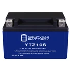 YTZ10S Lithium Battery compatible with ACDelco Gold ATZ10SBS Brand: Mighty Max Battery MFG Part#: YTZ10S-LIFEPO4 SKU: 4005074 Volts 12.8 Terminal Nut and Bolt Watt Hrs 51.2 Sealed Lead Acid Equivalent Ah 8.6Ah Chemistry LiFePO4 CCA 270 Length 5.88 Width 3.31 Height 3.75 Weight 2.86 Lbs Quantity 1 Warranty 1 Year Item description: Mighty Max Lithium Iron Phosphate (LiFePO4) engine start batteries are designed to replace Flooded, AGM, and Gel cell lead acid batteries in Power Sport applications such as motorcycles, ATVs, personal water craft, lawn mowers, utility vehicles, scooters, and dirt bikes. Up to 80% lighter than Lead Acid Equivalent 5X the Life of a Lead Acid Battery 2000+ Deep Cycles at 80% Depth of Discharge Foam spacers included to fit multiple size battery boxes. Lithium Batteries do not sulfate Attention - make sure to only use a compatible lithium charger for this battery and tightly screw the terminals. Having loose terminals will cause a buildup of heat resulting in damage to the battery. Specifications: Voltage: 12.8 Volt Cold Cranking Amps: 270 Cranking Amps: 360 Watt Hrs: 51.2 Terminal: Nut and Bolt Sealed Lead Acid Equivalent Amps: 8.6Ah Case Dimensions: 5.88 in x 3.31 in x 3.75 in Weight: 2.86 pounds. Welcome to the Mighty Max Battery Ebay store hosted via eComelectronics. eComelectronics is the exclusive ebay dealer for Mighty Max Batteries. Mighty Max Batteries are regulated sealed lead acid batteries that are maintenance free, rugged and economical. Our batteries are utilized in a wide variety of applications including electric vehicles, wheelchairs, scooters, UPS backups, computer systems, industrial, medical equipment and more. All of our products are factory direct to you, so you are guaranteed the freshest stock in the timeliest manner. 1 Year warranty against any type of manufacturer defects. We are the manufacturer and you are buying direct. Simply contact us for warranty service and we will provide instructions for getting your product serviced or replaced. Thank you for choosing Mighty Max Battery- your no-risk battery source!