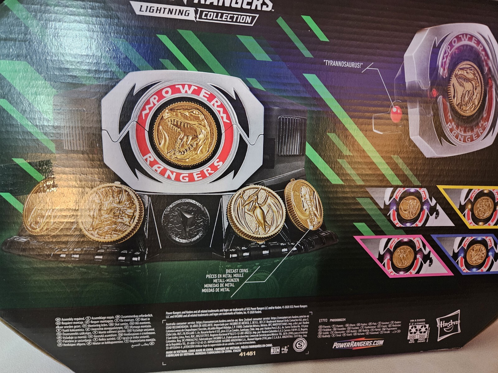 The product is a Hasbro Mighty Morphin Power Rangers Lightning Collection Power Morpher. It is a collector's edition, exclusive, and battery-powered. It features light up and sound capabilities, and comes unassembled. The morpher is designed in a multicolor scheme with a 1:1 scale, and is branded as an original product from the Power Rangers franchise. The featured character is a Power Ranger, and the product is categorized under Toys & Hobbies, Action Figures & Accessories, and Action Figures.