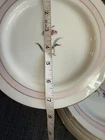 The vintage Mikado "Sabrina" plates are a set of 8 round porcelain and bone china plates, each measuring 7.5 inches in diameter. Made in Japan, these plates feature a pink color and a classic design that adds a touch of elegance to any dining table. The Mikado brand is known for its quality craftsmanship and attention to detail, making these plates a charming addition to any collection or table setting.