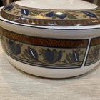 Excellent condition.5” height x 10” diameter. Elevate your dining experience with the Mikasa Arabella Ultra Ceram Bake & Serve Casserole dish, complete with a matching lid. This vintage-patterned piece combines timeless elegance with practicality, perfect for both special occasions and everyday use. Crafted from high-quality ceramic, it promises durability and a touch of class to your table. The dish boasts a serene blue hue that complements a wide range of decor styles, making it a versatile addition to your kitchen collection. Whether you're hosting a dinner party or enjoying a quiet meal at home, this casserole dish will serve your culinary creations with sophistication and charm.