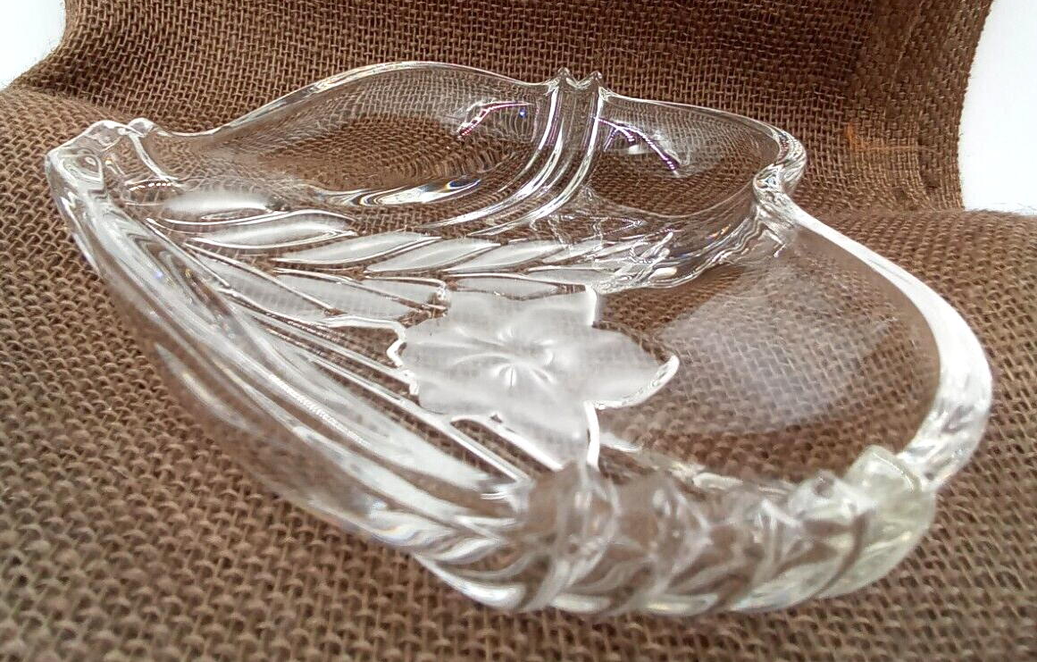 This gorgeous glass dish is even prettier in person! The orchid leaf detail is so elegant and it arrived perfectly packaged. I've been using it for candies and it looks absolutely stunning on my coffee table.