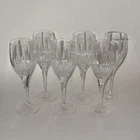 Mikasa Icicles crystal stemware pattern, produced 1994 - 2006. One set of six apx 8 1/4" tall x 3 1/4" top dia water goblets in very good used condition. No chips or cracks. Terms & conditions: Buyer pays shipping. Items shipped to address provided by ebay, no exceptions. Email questions before bidding/buying. US sales only. Payment due within 2 days of end of auction/purchase. I ship 3 times a week. I will not delay shipping at request of buyer. Read item description; items sold as is. I have a limited return policy. If you have an issue contact me.