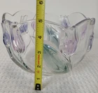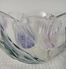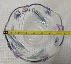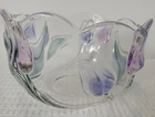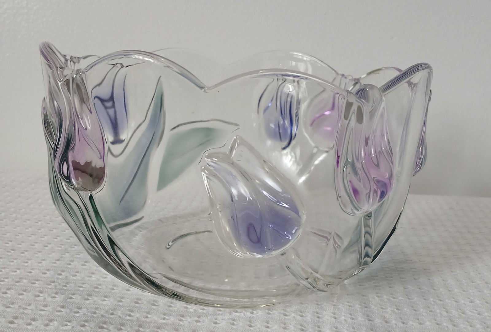 Made in Germany, Vintage MIKASA beautiful pressed glass serving bowl. Featuring clear glass with a scalloped rim and raised purple and green tulips. Pre-owned with no damages, chips, or cracks. Approximately 5x8x8 inches. This gorgeous spring flower-inspired serving dish could be shown off during your Easter Sunday dinner. You receive the same item shown. Pictures show the front, back, all details, and a tape measure for size reference. Carefully packed and ships quickly to you by the next business day.