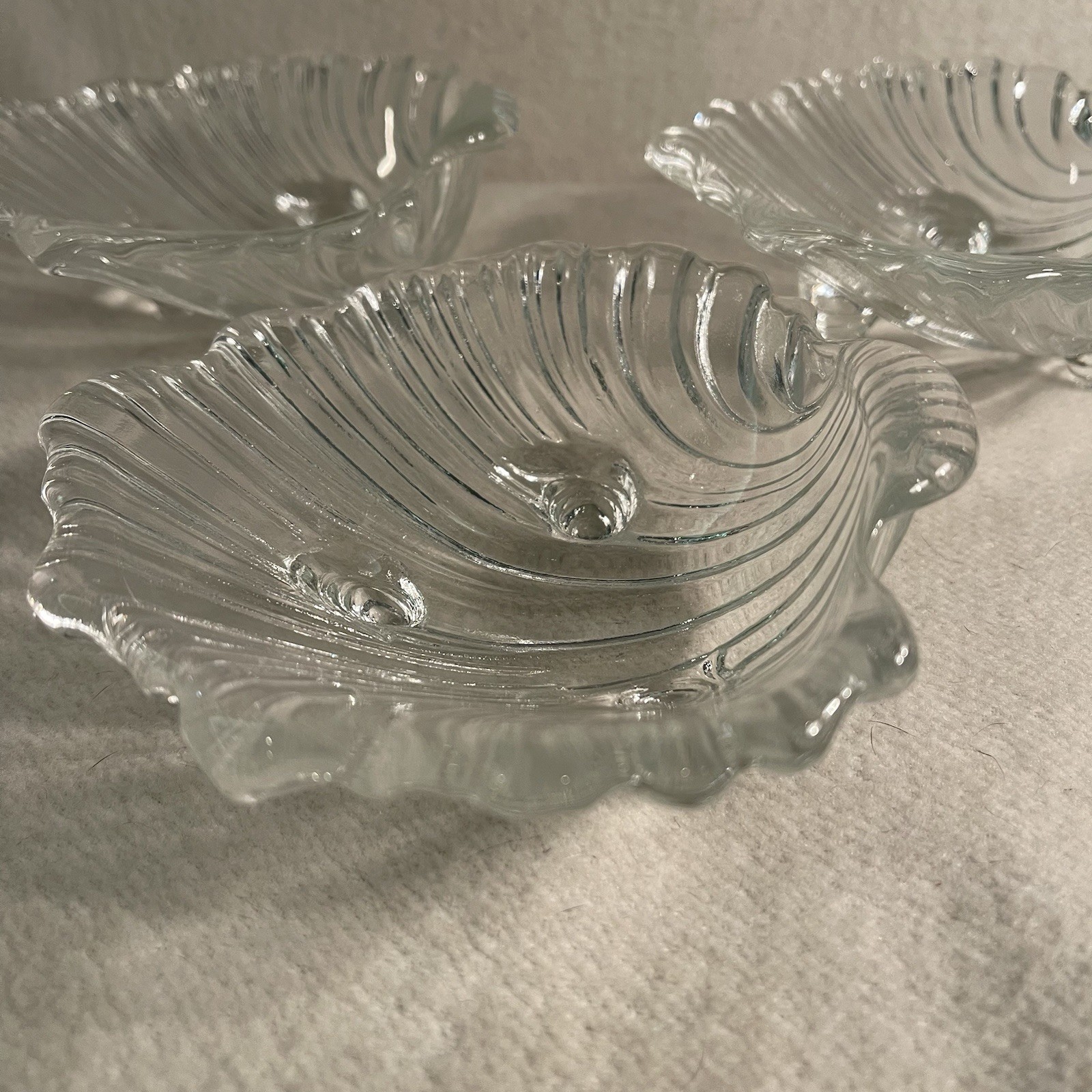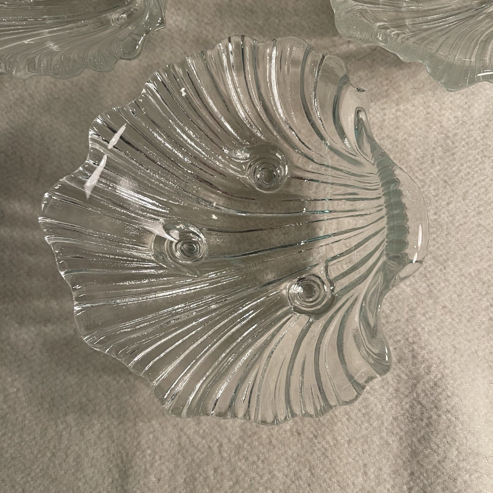 The Mikasa Walter Crystal Seascape Dip Bowls Set includes three pieces with a distinctive shell shape and a beautiful seascape pattern. Made of crystal in a contemporary design, these vintage dip bowls are perfect for all occasions and add a touch of elegance to any table setting. The Mikasa brand ensures originality and high-quality craftsmanship, making this set a stylish addition to your decor collection from the 1980s. Excellent condition. No chips or cracks.