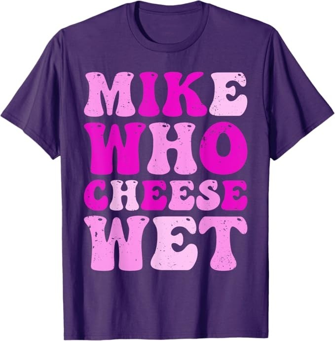 Mike who cheese wet Inappropriate Adult Humor embarrassing T-Shirt Designed and Printed in USA Product Features: • Classic Look and Feel: This ultra cotton tee offer the timeless appeal of traditional cotton. The high-quality print enhances its casual appearance. • Material: Made from 6.1-ounce, 100% cotton. (Note: Dark Heather variant is 50% cotton, 50% polyester.) • Durability: Features double-needle stitching on the neck, sleeves, and hem for added durability. Designed for a roomy, unisex fit. • Print Type: DTG (Direct to Garment) • Manufacturer: Gildan 5000, 5000b (Made in USA) Shipping Information: • Handling Time: With POD(Print-On-Demand) product model, we typically require about 3 business-days handling time before shipping. In most cases, our handling time’s , rang e from 1-2 business days. • Delivery Time: • USA: Approximately 2 -6 business days • Canada: Approximately 6-10 business days (We currently don’t offer international Shipping) • Worldwide: Approximately 15-25 business days (We Currently don’t offer international Shipping) • Shipping Carriers: USPS and DHL • Note: Business days exclude weekends and holidays. Return & Exchange Policy: • Quality Guarantee: We stand behind the quality of our products and workmanship . Any defects or errors on our part must result in a refund/ replacement at no charge. • Conditions for Returns: Returns are generally not accepted for user errors such as incorrect selection of sizes, designs, or colors. Returns /Replacements are acceptable for damages such as poor printing results, incorrect size or design caused by us. • Note: Please reach out to us if there are any questions or issue s with your item, we’ll do our best to resolve any issue you might have. Note: • We’re glad to have your support! If you have a moment, y our honest feedback is very valuable to us. Thank you!