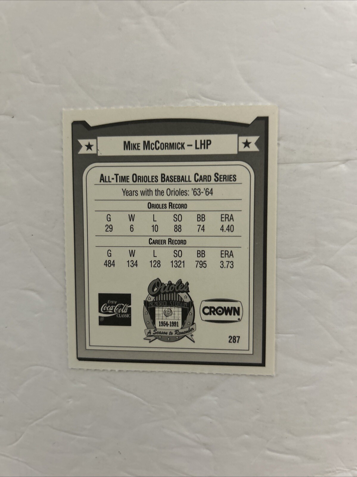 Offered is a Mike McCormick Autographed Baltimore Orioles Crown Baseball Card. Card and signature are excellent. Look at photos to see the excellent condition of this beautifully signed baseball card. I have been a baseball memorabilia collector for more than 40 years. Always a money back guarantee if not satisfied provided card is returned exactly as received. Check my 100% feedback and buy with confidence. Ships with tracking and delivery confirmation. State sales tax may be added depending on state where buyer resides. Thanks for looking.