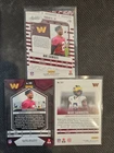 The product is a lot of 3 Mike Sainristil 2024 rookie trading cards from various sets like 2024 prestige, mosaic, and absolute. Manufactured by Panini for the NFL season, each card features the player from the Washington Commanders.