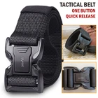 SHAVIT's Tactical Belt Military Style Belt Heavy-Duty Police Utility Nylon Rigger Belt with Quick-Release Metal Buckle Belt for Men Black HEAVY-DUTY BUCKLE: made of heavy-duty zinc alloy, strong and durable QUICK RELEASE DESIGN: a simple push on the golden tabs and the buckle is released. Easy to operate and convenient to carry How to Wear - 1.Remove the buckle from the webbing. 2. Get the webbing through you belt loops. 3. Adjust it to your perfect size. Total Length 125cm/49 inch Fits Waist 33"-43" KT Deals Military Tactical Belt is not only Army fans’ favorite, but also the outdoor sports and field training friends’ good partnersand can the belt prior to a camping trip . This belt is the best choice for you Quick Release - The metal quick-release buckle makes fastening and releasing the belt extremely convenient and quick. No Holes - No holes on the belt, the tactical belt is full adjustable to a certain waist size. Heavy Duty - The tactical belt is with a metal alloy buckle, it can bear a large pulling force. Belt Size: Belt Width: 3.8cm / 1.5in Belt Length: 125cm / 49in in this tactical style belt comfortably fits up to a 43” waist.