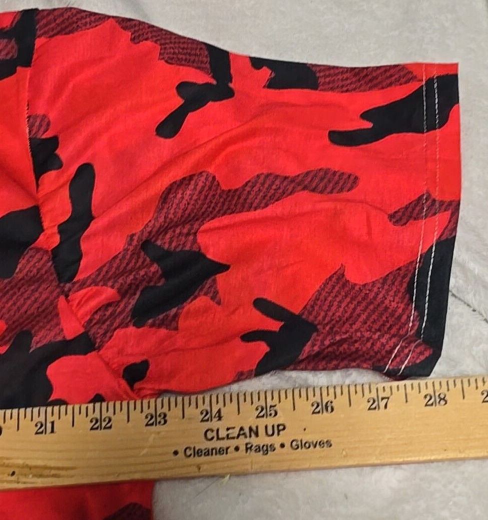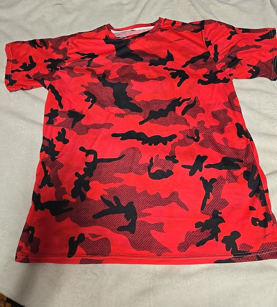 This camo tee is awesome—super comfortable, true to size, and the military-style print looks even better in person. The fabric is durable but soft, perfect for outdoor activities or casual wear. The seller provides clear measurements and is very responsive. Love the bold red camo design—it stands out without being too flashy. Definitely worth it for the price! Smoke-free home is a plus. Highly recommend!