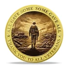 Still wondering what to add in a collection ? A special and long-last memory gift? Or the connection between you and your most important one. You can always find your own treasure here. About the item Our challenge coin is 1.57 inch in diameter and 0.12 inch in thickness, and it has two bright colors with 3D carving techniques, zinc alloy with gold plated material. It's very easy to carry in your daily life, such as put it in a pocket, purse, backpack, or put it on display on any table or desktop. This stunning challenge coin pays tribute to the bravery and sacrifice of all veterans who have served. With its powerful design, it serves as a reminder of the courage and dedication of those who gave their all for freedom and country. This coin makes a meaningful keepsake for anyone looking to honor the legacy of our heroes. Front Side: Features soldiers standing in front of the U.S. flag with the words VETERANS and REMEMBERING ALL WHO SERVED . Back Side: Depicts a soldier walking through a battlefield with the inscription ALL GAVE SOME , SOME GAVE ALL and THANK YOU TO ALL VETERANS . It is a perfect item which is an ideal gift for Veterans Day, Memorial Day, or any occasion to honor a veteran's service. It's a thoughtful and enduring way to say " Thank You ." Owing it, challenging your life, showing your strong, just live our fearless soldiers/veterans, never give up. (Click " Add to Cart " to get your Veteran Challenge Coin today and honor the brave men and women who have served our country with pride.) ( There are also so many blank coins supporting to customize, if any interest, welcome to contact. We have machines, which can produce the item on the day. Cilk your cute finger message me!!! ) SUPER ATTENTION IF THERE HAVE MORE COIN BUYING, MORE DISCOUNT WILL GAIN FOR YOU. Package Each coin will be packed up individually with a plastic case suit in opp bag. Shipping We'll start shipping as soon as possible within 3 business day normally. Tracking will be available after several hours. Feedback We try to make sure ALL customers are satisfied with our services, if you do, a POSITIVE feedback is appreciated, thank you very much. And we always leaving a positive one for customer when item is delivered successfully. Contact Us Feel free to contact us at any time, we're happy to help. You can reach us by eBay or E-mail. Have a nice day! Pls check the item specification carefully before buying it.