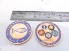 Bidding on 2 Challenge Coins LCC Kare 9 Military Ministry, Air Force, Army, Navy, Marine, and Coast Guard in good condition, see photos. Please ask questions before you bid. Buyer pays shipping and taxes. Ground Advantage shipping is $6.55.