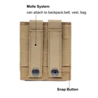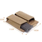 Features: 1. High-quality 1000D nylon material, waterproof and corrosion-resistant, durable, while taking into account comfort, feel softer. 2. This outdoor pouch is small size and lightweight, it is portable and easy to store items and carry. 3. This bag can put the outdoor tools in it, such as a walkie-talkie, flashlight, water bottle, key or other items. 4. This pouch has a molle system which can hang on the (tactical) vest, backpack or waist belt, it is easy to carry. 5. Suitable for camping, hiking, hunting, climbing, fishing or other outdoor activities, it is a practical and beautiful pouch. Specifications: Material:1000D Nylon Size:11x10x2cm Weight:0.06kg Color:Black,Army Green,Khaki Model Number:Hunting Pouches Suitable for:Hunting,hiking,camping,combat game Function:Hunting accessory bag Pa ckage Included: 1x Magazine Pouch