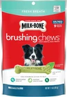 Menu Other Items Feedbacks About Us Contact Us Add To Favorites Milk-Bone Brushing Chews Daily Dental Dog Treats, Small/Medium Treats, 7.1 Ounce Pouch Dog Chews combine irresistible taste with patented design to help support strong teeth Patented design helps reduce tartar buildup, maintain healthy gums, and freshen breath through scrubbing action Veterinary Oral Health Council (VOHC) accepted seal Fortified with calcium; no artificial flavors; sealed for freshness Small-medium size for dogs from 25-49 lbs.; 63 calories per dental treat; 9 treats per bag Bad breath can keep you and your dog from the closeness you've always enjoyed. Now you can help keep your canine friend's breath fresh with Milk-Bone brushing Chews daily dental treats. These chews feature unique nubs and ridges that are designed to clean Like bristles on a toothbrush*, helping control tartar and plaque buildup through scrubbing action. Made with no artificial flavors and sealed for freshness, These chews have an irresistible minty taste your dog will love. They are fortified with calcium to help support strong bones and teeth-andd have no Artificial flavors. *When fed daily Milk-Bone brushing Chews are as effective as brushing a dog's teeth twice a week based on the reduction of tartar build-up. The Veterinary Oral Health Council recommends daily tooth brushing for optimal effectiveness. Item Specification Item model number 079100882571 Age Range Description All Life Stages Item Dimensions LxWxH 8.79 inches Brand Name Milk-Bone Color Red Brand Milk-Bone Country of Origin USA Specific Uses for Product Active Item Weight 7.1 Ounces Manufacturer The J.M. Smucker Co. Size 7.1 Ounce (Pack of 1) Number of Items 1 Target Audience Keyword Dogs, dogs Age Range (Description) All Life Stages Breed Recommendation Small Breeds Flavor Fresh Breath Brushing Chews Model Name Brushing Chews Daily Dental Dog Treats, Fresh Breath, Small-Medium Item Form Stick Specific Uses For Product Active Item Package Dimensions L x W x H 7.24 x 6.73 x 1.73 inches Included Components 1 - 7.1 Ounce Bag Dimensions Shipping Returns Additional Info Product Dimensions: 6.73 inches x 7.24 inches x 1.73 inches. Weight: 7.1 oz Fast shipping is very important for us. Our standard shipping service is FREE. Your order will be shipped within 1-3 business days upon full payment received. Most items are delivered within 3-5 business days, however, please allow 3-10 business days. We are shipping only to USA. We only ship to the confirmed Paypal address. We reserve the right to cancel any order for any reason at any time. We are not responsible for undeliverable addresses. We offer a 30 day return policy from checkout winning date. Your satisfaction is guaranteed! If for any reason you are unhappy with your item, just return it within 30 days for a full refund, minus shipping cost. Please contact us prior to initiating a return so that we can issue you a refund authorization. Items defective upon receipt must be packaged in their retail packaging as if new and returned with a detailed description of the problem. Return shipping fees are not refundable. We reserve the right to decline any returns if the above guidelines are not followed. All of our items, unless otherwise stated, will only run on 120 volts. Please check to make sure your country complies with these specifications. If you have a problem or question regarding your transaction please contact us before leaving any type of feedback. We will work with you to resolve any problem you may have.