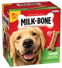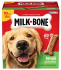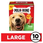Specifications Brand Milk-Bone Pet Size Large Pet Food Form Dog Biscuit Meat Type Beef Pet Food Flavor Original, Buscuit Pet Food Condition Dry Pet Treat Variety Crunchy Treats Assembled Product Weight 168.72 oz Animal Type Dog Manufacturer The J.M. Smucker Company Assembled Product Dimensions (L x W x H) 7.88 x 10.95 x 11.89 Inches Product details Make your dog′s life more fun with delicious dog snacks from a brand you can trust. Milk-Bone Original dog biscuits are prepared with care and will give your dog the simple, genuine joy that your dog gives you every day. How? A classic crunch with a wag-worthy taste — now with even more meaty taste compared to the Milk-Bone Original biscuits you know and love. Better yet, the crunchy texture of Milk-Bone dog biscuits helps freshen dogs′ breath and reduce tartar build-up, so you can fully enjoy all those sloppy doggie kisses. These tasty dog treats even contain vitamins and minerals — 12, to be exact. So you′ll be almost as happy to give them as your dog is to get them … almost. Contains one (1) 10 pound box of large dog biscuits Wholesome and tasty dog treats — now with even more meaty taste compared to the Milk-Bone Original biscuits you know and love Crunchy texture helps freshen breath and reduce tartar build-up, perfect for sloppy doggie kisses Vitamins and minerals (twelve to be exact) Bone-shaped deliciousness that makes dog life more fun