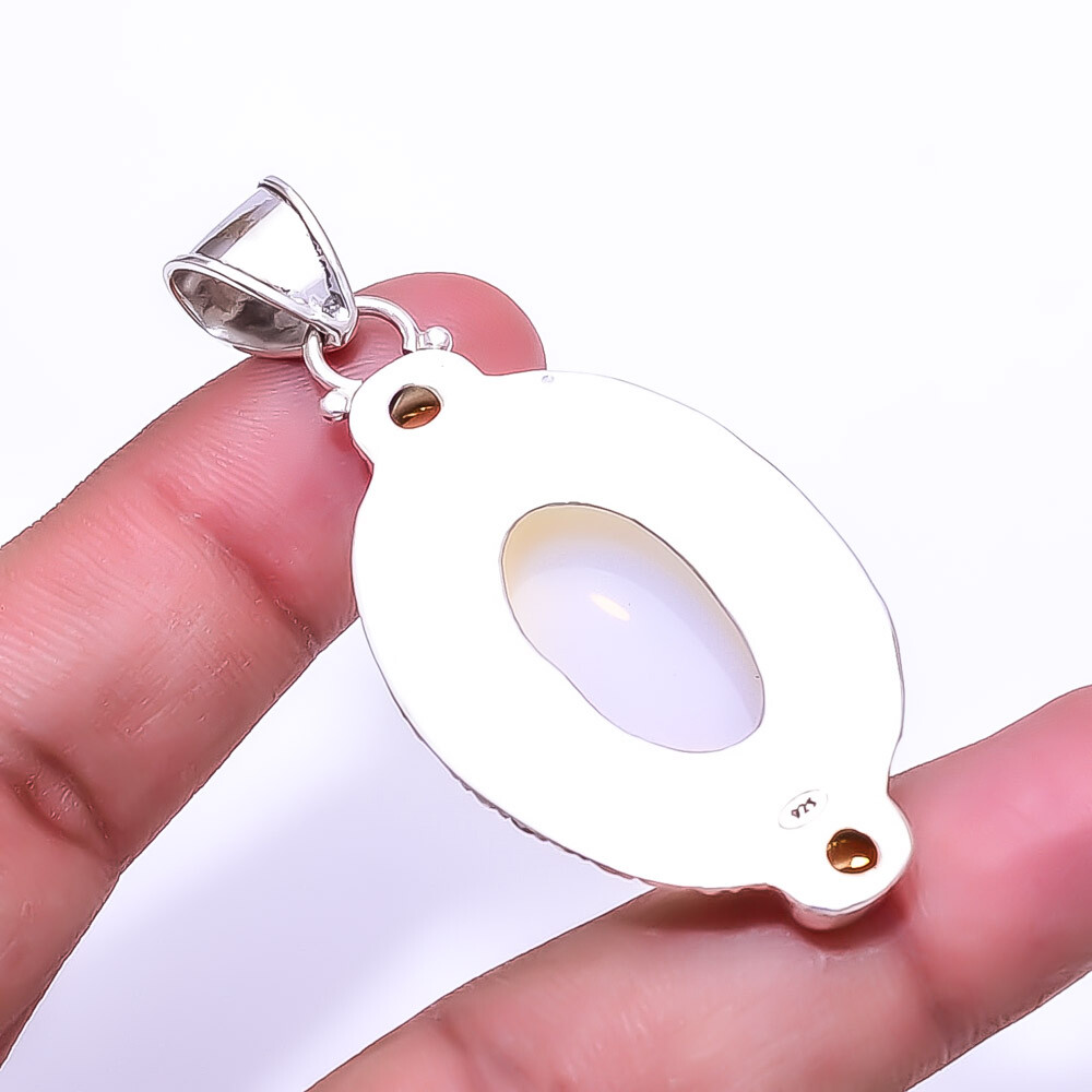 Theme Beauty Main Stone Depth As Seen in Picture Main Stone Length As Seen in Picture Main Stone Width As Seen in Picture Seller Warranty Yes Shape As Seen in Picture Wholesale Yes SKU P_9506_346_76 Unit Quantity 1 Unit Type Unit Type Pendant Style Pendant Item Length 2.15" Main Stone Opal Main Stone Creation Lab-Created Main Stone Color White Main Stone Treatment Lab-Created Secondary Stone Citrine Material Gemstone, Stone Metal Sterling Silver Metal Purity 925 Parts Per 1000 Base Metal Sterling Silver Cut Grade Very Good Setting Style Bezel Number of Gemstones 3 Brand Unbranded Country/Region of Manufacture India Color Silver Closure Not Applicable Chain Type Not Applicable Total Carat Weight 76 Ctw Number of Diamonds As Seen in Picture Features Engraved, Nickel-Free, Handcrafted Diamond Color Grade Not Applicable Diamond Clarity Grade Not Applicable Colored Diamond Intensity Not Applicable Certification 100% Genuine Guaranteed Pendant/Locket Type Pendant Occasion Christmas, Birthday, Anniversary, Engagement, Wedding, Valen Shipping & Handling - Charge - 1st item-5.90 And Additional item-1.90 Handling Time - 1 Days . Delivery Time - 2 TO 3 DAYS. Shipping Service - USPS First Class Package 2 -3 Days. Returns - 1.We offer a 100% Money Back Guarantee minus shipping for 30 days after receiving the Item / item's. 2..The item must not be altered or damaged in any way shape or form. 3.Upon receiving these items your payment will be refunded. 4.Email us for return instructions before sending merchandise back. 5.Please allow up to 1 business day for all returns to receive credit. 6.Sizing does not affect the return policy. Payment - We accept PayPal for Payment ,should made with in 14 days once buying or winning done , in case of late information expected .