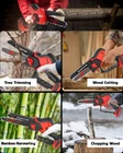 battery powered chainsaw(Battery Not Incuded) is compatible for 48-11-1820, 48-11-1850, etc. We suggest that you can plug in the original battery to get your job done fast and easy, eliminating the need for cords, and get rid of mixing gas to clog up your carburetor! Besides, it's settled down low-voltage protection to ensure the machine will automatically shut down when the battery voltage is below 14.4v, prevent any overload damage. Battery Powered Design: mini chainsaw is compatible for milwaukee 18v battery(for 48-11-1811, 48-11-1820, 48-11-1850, 48-11-1860, etc)(Battery Not Incuded). We suggest that you can plug in the original battery to get your job done fast and easy, eliminating the need for cords, and get rid of mixing gas to clog up your carburetor! Besides, it's settled down low-voltage protection to ensure the machine will automatically shut down when the battery voltage is below 14.4v, prevent any overload damage. 800W High-efficiency Cutting: pruning chainsaw is adopted with a super powerful 800W/6000rpm brushless motor and sharp blades, offers the high cutting speed up to 42ft/s, so cut a 6" log only need 6s as quick as cutting butter! Besides, the upgraded motor allows continuous & smooth cutting, more powerful, higher speeds, meet your any needs for easy cutting, and built-in fan and heat sink for cooling the motor quickly, avoid burning the motor from long working time 8-Inch and 6-Inch Combo: We combine 6"and 8" chainsaw as a suit to meet your extensive choice, like tree trimming, branches pruning, wood cutting, etc. The high hardness quenched chain ensure high hardness, solid, sharp, and cut flatter, offer more flexibility for cutting different sizes of woods, widely used in yard, gardens, ranch, fireplace, camping,trail Riding, trailer, forests. Auto-Oiling Setting: Our mini saw has a built-in 50ml oil tank for auto chain lubrication system. While the machine is running, it will lubricate the chain regularly automatically and ensure fresh ample layer of oil is evenly throughout all the groove, offer smooth cutting and reduce wear and tear, optimize bearing and mechanical life, let your hands get rid of staining. Moreover, we also prepare an empty oil bottle for your outdoor cutting need. Lightweight & Tool-free Chain Tensioner: It only weight 2.2 lbs, very lightweight and portable, even easily used by the elderly and women. Equipped with the tool-free chain tensioning and bar lock knob making it easy to install and replace chain, and adjust chain tension. Safty Lock & What You Get: This cordless chain saw need be activated by pressing the safety button and the switch at the same time, ensure personal safety especially for beginners when misplay switches. Package includes: 1* pruning chainsaw (battery not included), 1*oil bottle, 1* 6" guide bar and chain (already installed on the machine), 1*8" guide bar, 2*8" saw chain, 1 * 6 Inch chain, 1*wooden brush, 1*user manual. If you have any questions about the item, please contact us, we'll try our best to help you solve it.