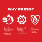 The MILWAUKEE 1/2" – 1-1/4� CTS-V Pivoting Press Ring Kit is designed for use with the M12 FORCE LOGIC Press Tool on Viega ProPress, Apollo Press and other press fitting systems. The CTS-V Pivoting Press Ring Kit is a more efficient alternative to sweat and solder, enabling you to press connections on 1/2" – 1-1/4� copper and copper tube-sized (CTS) stainless steel pipe. Pivoting functionality delivers greater access in tight spaces when paired with the X3 Ring Jaw & M12 FORCE LOGIC Press Tool. Additionally, Milwaukee's press blocking system prevents improper ring and ring jaw mismatch providing peace of mind in quality connections. The 1/2" – 1-1/4� CTS-V Pivoting Press Ring Kit, combined with the ring jaw and in-line M12 FORCE LOGIC Press Tool, delivers unrivaled access in tight spaces and around installed pipes, providing you with controlled, flameless copper connections for unmatched productivity. Features For use with M12 FORCE LOGIC Press Tool Compatible with Viega ProPress and major fitting manufacturers Pivoting functionality delivers greater access in tight spaces Compatible with M12 FORCE LOGIC Press Tool Designed for use with all Major Fitting Manufacturers, Including Viega ProPress Systems and ApolloPress Copper Systems Pivoting Functionality Delivers Greater Access in Tight Applications Easy Opening Ring Designed for One Handed Use Faster Alternative to Sweat and Solder Durable Steel Rings Provide Outstanding Life 2 Year Warranty What's in The Box (1) 1/2" CTS-V Pivoting Press Ring (49-16-2650X) (1) 3/4" CTS-V Pivoting Press Ring (49-16-2651X) (1) 1" CTS-V Pivoting Press Ring (49-16-2652X) (1) 1-1/4" CTS-V Pivoting Press Ring (49-16-2653X) (1) X3 Ring Jaw (49-16-2459X3) (1) Hard Carrying Case Owner's Manual Warranty 2 Year Limited Factory Warranty 30 Day Satisfaction Guaranteed Specifications Sku 49-16-2490X Brand Milwaukee Length 7 in. Width 18.5 in. Height 14.5 in. Weight 5.6 lbs why buy from us? secure & hassle-free shopping All items are covered by manufacturer warranty. fast shipping Most orders delivered in 1-3 business days. satisfaction guaranteed All our sales are backed by a 30-day satisfaction guarantee.