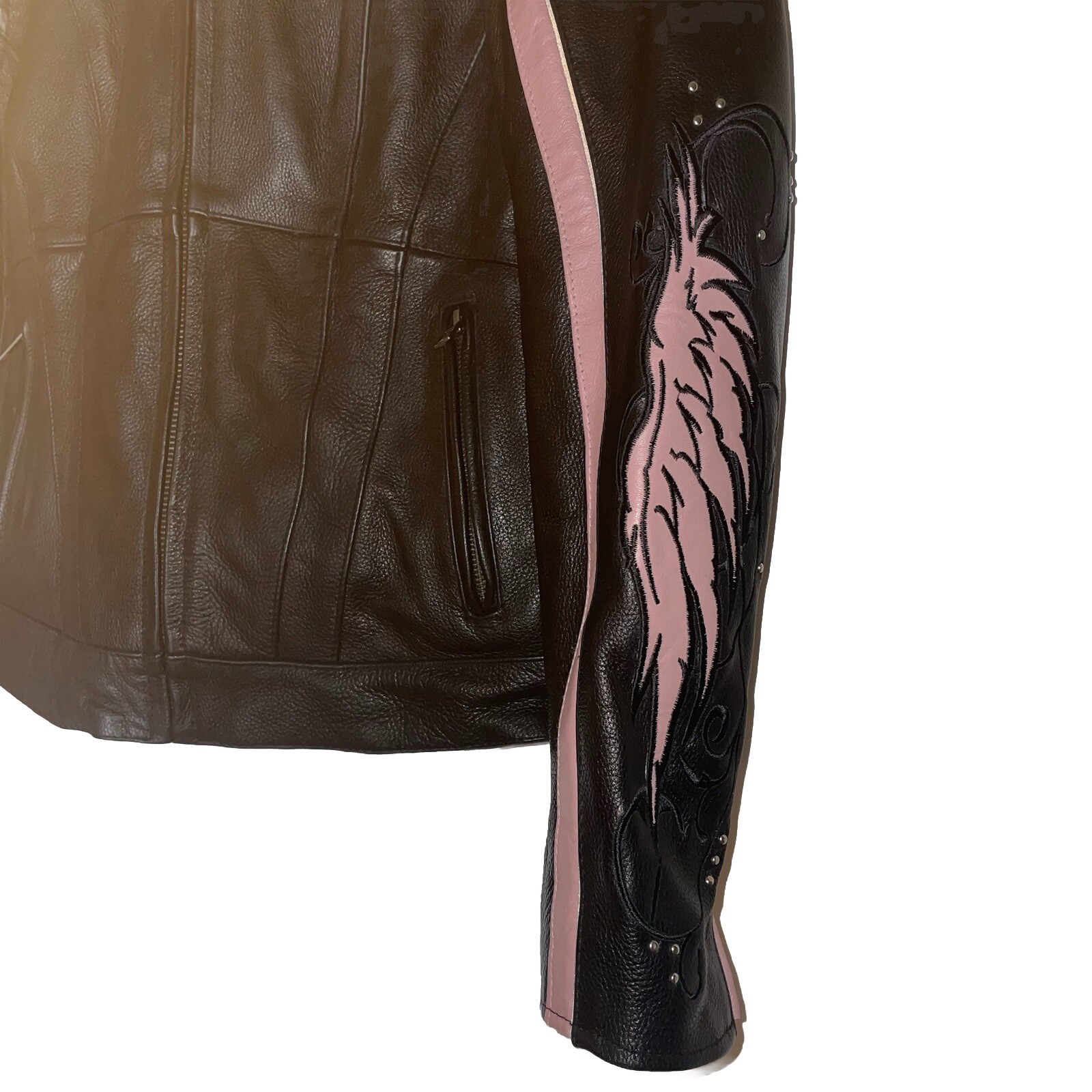 This Milwaukee leather jacket is a women’s size medium in pre-owned condition and sold as is