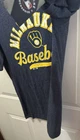 Condition is new with tags. Size Medium. Gear up for game day with this majestic Milwaukee Brewers T-shirt, a must-have for any dedicated MLB fan. The shirt is designed with care in Mexico, featuring the vibrant blue color that represents the team with pride. Tailored to fit a comfortable medium size, it's perfect for showing your support during the regular season and beyond. Crafted for durability and style, this officially licensed product ensures you're sporting authentic baseball apparel. The clever detail of a glove inside a diamond adds a unique touch to your fan gear. Whether you're at the stadium or just out and about, this shirt is your go-to for showing off your Milwaukee Brewers loyalty.