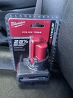 This is a Milwaukee M12 High Output XC5.0 Lithium-Ion Battery Pack in red. It has a capacity of 5 Ah and a voltage of 12 V. The battery pack is compatible with Milwaukee M12 tools and has a sleek design with multiple color options. The item height is 4.3 in, item length is 3.4 in, item weight is 0.95 lbs, and item width is 2.6 in.