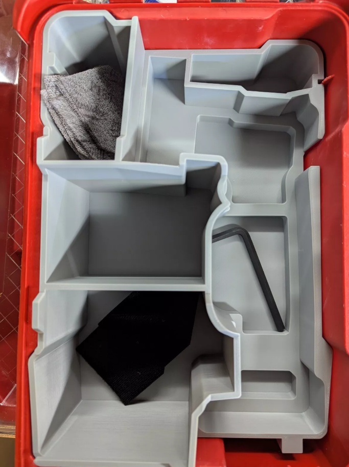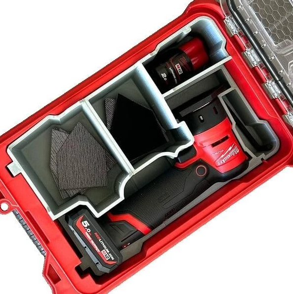 Milwaukee M12 Detail Sander Insert | PACKOUT Storage Solution Keep your Milwaukee M12 Orbital Detail Sander and accessories securely stored and organized with this custom-fit insert for the Milwaukee PACKOUT Compact Organizer (48228435) . Engineered for precision and durability, this insert ensures your sander and sanding accessories remain protected, stable, and ready for action. 🔧 Perfect Compatibility Custom-designed to securely fit the Milwaukee M12 Orbital Detail Sander (2531-20) . Dedicated compartments for sanding pads and accessories. Specifically designed to fit the Milwaukee PACKOUT Compact Organizer (48228435) . ⚡ Quick Access & Organization Precision-molded layout keeps your tool and accessories neatly in place. Prevents movement during transport and makes setup effortless on the job. Room for additional sanding sheets or compact attachments. 🛠️ Optimized Storage Solution Maximizes the available space in your PACKOUT system. Keeps your detail sander kit organized and protected in one compact tray. 🏋️ Durable & Heavy-Duty Construction 3D-printed using high-strength, impact-resistant material for lasting use. Built to endure daily job site wear and tear. 🚀 Easy Installation & Secure Fit No tools or modifications required—simply drop the insert into your PACKOUT Compact Organizer. Stable and lightweight, providing a clean and professional storage setup. What’s Included? ✔ 1 x M12 Detail Sander Insert ❌ PACKOUT Compact Organizer, M12 Detail Sander, and accessories NOT included. Upgrade your Milwaukee PACKOUT system with this custom-fit insert—ensuring your M12 Detail Sander and essentials stay organized, protected, and always within reach. Perfect for pros and weekend warriors alike!