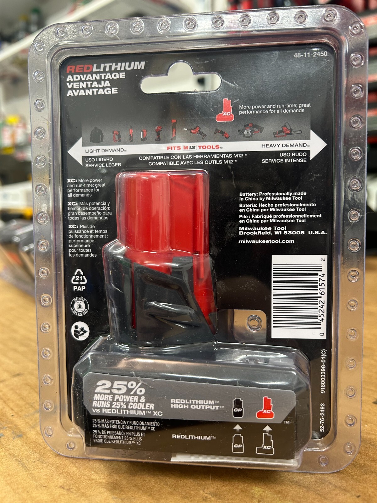 Milwaukee M12™ REDLITHIUM™ HIGH OUTPUT™ XC5.0 Battery Pack Manufacturer's Part # 48-11-2450 BRAND NEW UNOPENED PACKAGING! This exact battery is $119 at Home Depot right now.