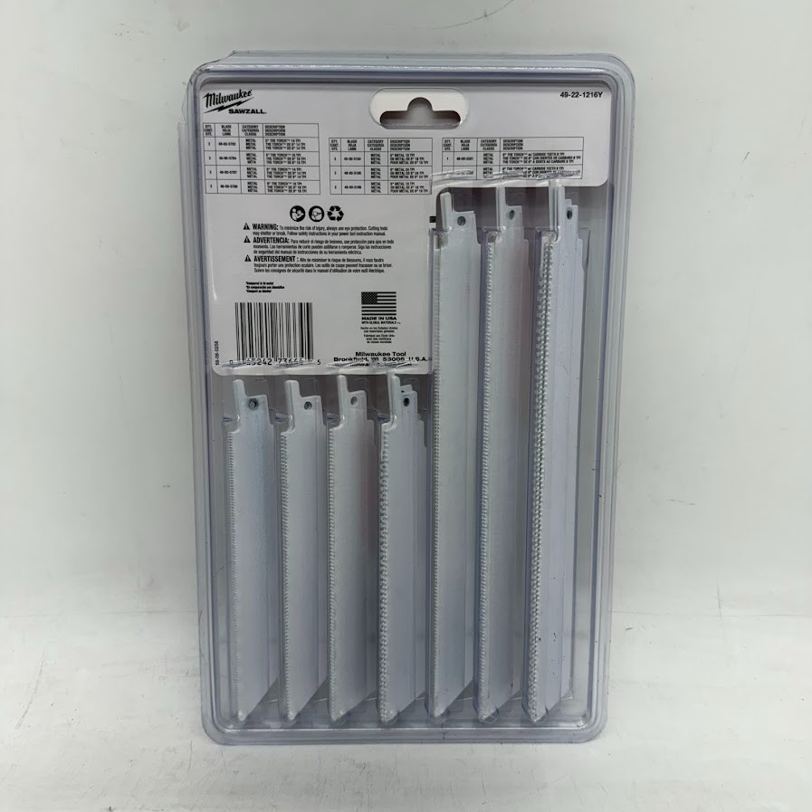 Milwaukee SAWZALL® Metal Cutting Bi-Metal Reciprocating Saw Blade Set – 16-Piece (with 2 Carbide Blades) The Milwaukee SAWZALL® 16-Piece Metal Cutting Blade Set is built for professionals who need fast cuts, long blade life, and versatility across a wide range of metal applications. This set combines durable bi-metal blades with 2 carbide-tipped blades to handle everything from thin sheet metal to thick, hardened materials. Milwaukee SAWZALL® blades are engineered for maximum durability and performance , delivering aggressive cutting action with reduced tooth breakage. The carbide blades extend cutting life in demanding applications, making this kit ideal for contractors, metal fabricators, plumbers, electricians, and serious DIY users. Organized for convenience and ready for tough jobs, this blade set is designed to keep you cutting efficiently whether you’re working on demolition, repair, or installation tasks. Features & Benefits 16-piece metal cutting blade assortment for maximum versatility Includes 2 carbide-tipped blades for extended life in extreme metal applications Bi-metal construction provides flexibility and durability Optimized tooth design for fast, clean metal cuts Ideal for cutting steel, pipe, conduit, angle iron, and sheet metal Designed for use with all standard reciprocating saws Included (16) SAWZALL® Metal Cutting Reciprocating Saw Blades Includes (2) Carbide-Tipped Blades We take great care to inspect all items and ensure they are accurately described. Should you have any issues with your purchase, please let us know immediately. We are committed to resolving any concerns promptly and to your satisfaction. Our small business truly appreciates your patronage. Milwaukee SAWZALL blades, reciprocating saw blade set, metal cutting recip blades, bi metal sawzall blades, carbide reciprocating saw blades, demolition blades, metal cutting blades set