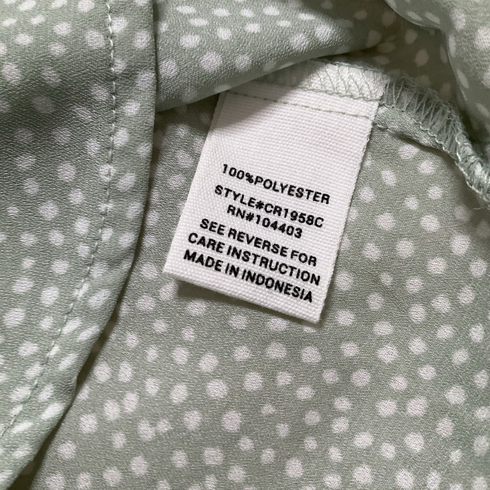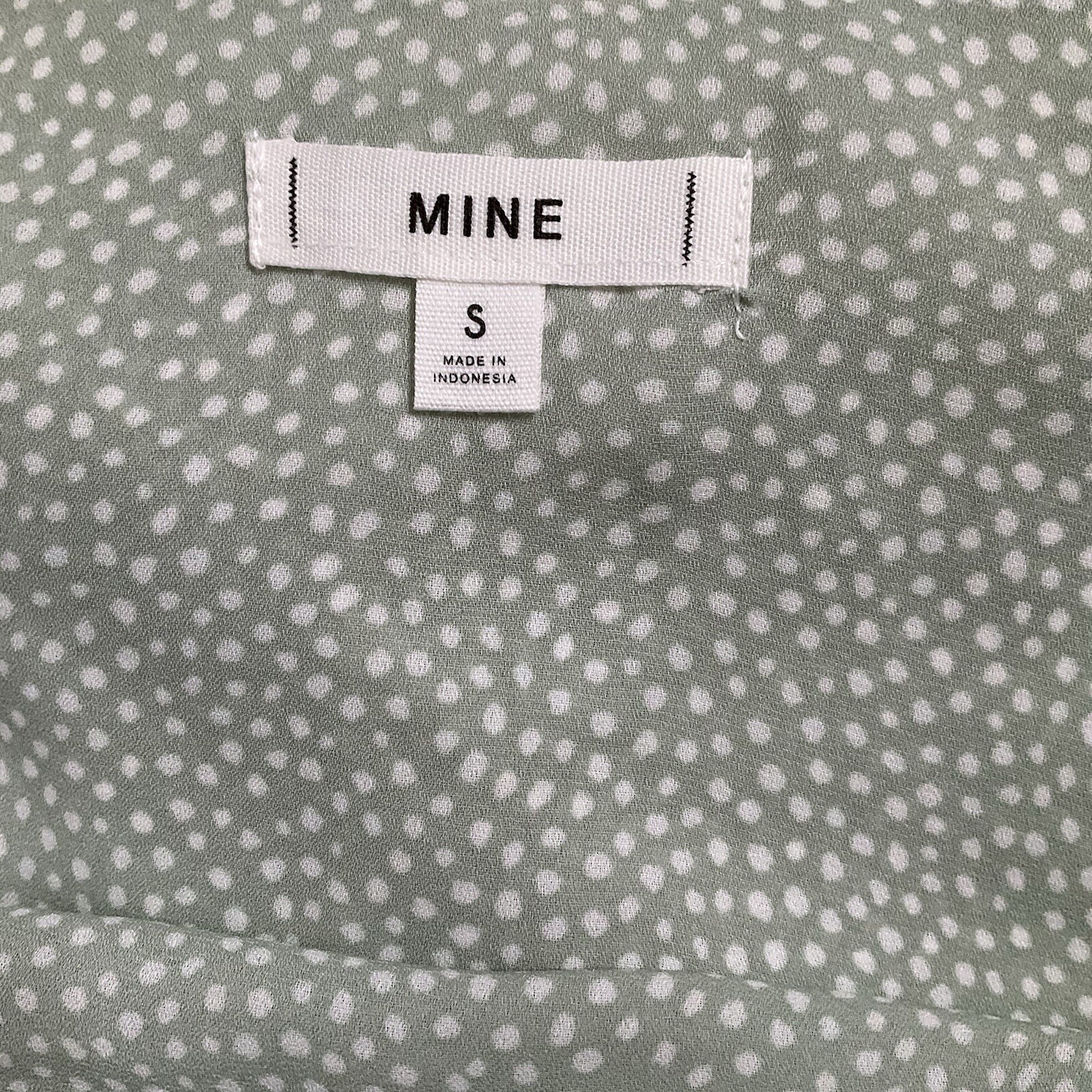This is a sleeveless green camisole blouse by the brand MINE, featuring a polka dot pattern and a V-neckline. It has a hipster, school, music, bohemian, college, classic, city, retro theme. The blouse is made of lightweight polyester material with decorative accents in the form of straps. The size is Medium and the fit is regular, suitable for casual occasions. NWOT This Mine tank top is the perfect blend of delicate and stylish, featuring a sheer, see-through design that adds an effortlessly chic vibe to any outfit. The lightweight fabric keeps it breathable and comfortable, making it ideal for warmer weather. With adjustable spaghetti straps and a flattering V-neck, this top can be easily tailored to your preferred fit. Layer it over a cute bralette or pair it with your favorite high-waisted jeans for a laid-back yet fashionable look. Quantity: 1 Measurements for size S: Bust 17 Quantity: 2 Measurements for size L: Bust 19 PLEASE SPECIFY SIZE SELECTION AT THE END OF TRANSACTION.