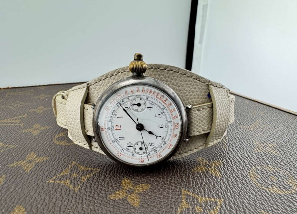 PROPONIAMO; -Marca: MINERVA CRONOGRAFO -Cassa: ARGENTO 900 DIAMETRO 43MM , FONDELLO ORIGINALE CON APERTURA A SCATTO -Movimento :ORIGINALE , MINERVA 29.9 CH , RUOTA COLONNA -Vetro:PLEXY -Corona:ORIGINALE CON TASTO IN CORONA -Ghiera:NO -Tasti: IN CORONA -Quadrante: PORCELLANA ORIGINALE -Lancette: ORIGINALI ACCIAIO AZZURRATO -Cinturino/Bracciale: FATTO SU MISURA NUOVO PELLE HERMES -Scatola e documenti: NOSTRA POCHETTE IN VELLUTO COMPRESA -Condizioni : OTTIME -Revisionato:SI -Uomo/donna/unisex:UOMO PER QUALSIASI DUBBIO CONTATTATEMI ,RISPONDEREMO IL PRIMA POSSIBILE